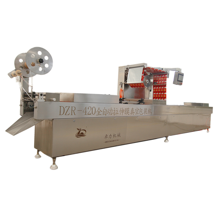 全自動拉伸膜真空包裝機是以塑料或塑料鋁箔薄膜為包裝材料,對液體、固體、粉狀及糊狀的食品、糧食、果品、醬菜、果脯、藥材、電子元件、精密儀器、稀有金屬等進行真空包裝,經(jīng)真空包裝的物品可以防止氧化、霉變、蟲蛀、腐爛、受潮,延長保質(zhì)保鮮期限。特別適用于茶葉、食品、商店、研究機構(gòu)等行業(yè),具有外型美觀、結(jié)構(gòu)緊湊、效率高、操作簡便,底部帶有座輪,移動方便等優(yōu)點。