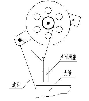 拉伸膜真空包裝機卷料回收方式由卷料電機、檢測開關(guān)等組成。自然狀態(tài)下電機轉(zhuǎn)動,當(dāng)擺臂下降觸碰到檢測開關(guān)后,電機停止轉(zhuǎn)動。下一個步進后,擺臂上揚,電機轉(zhuǎn)動,擺臂下降碰到檢測開關(guān),如此反復(fù)。邊料纏繞方式如右圖所示。
