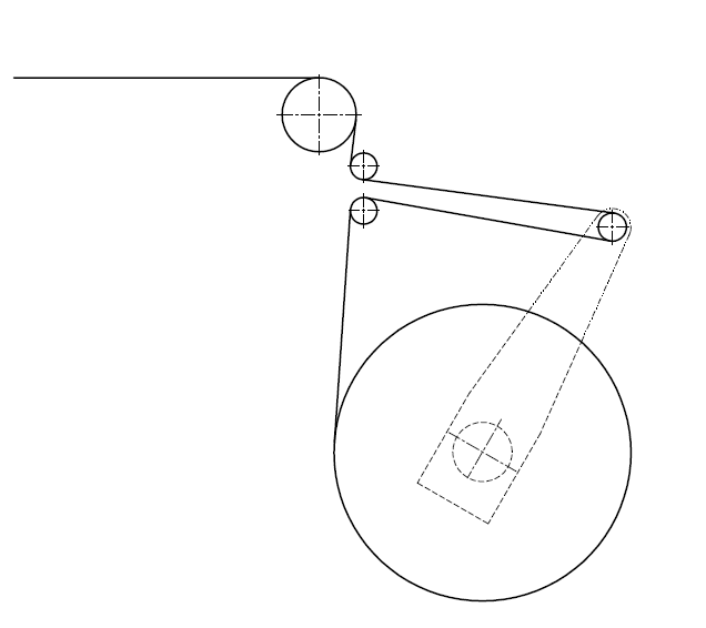 卷料回收方式由卷料電機、檢測開關等組成。自然狀態下電機轉動,當擺臂下降觸碰到檢測開關后,電機停止轉動。下一個步進后,擺臂上揚,電機轉動,擺臂下降碰到檢測開關,如此反復。邊料纏繞方式如右圖所示。